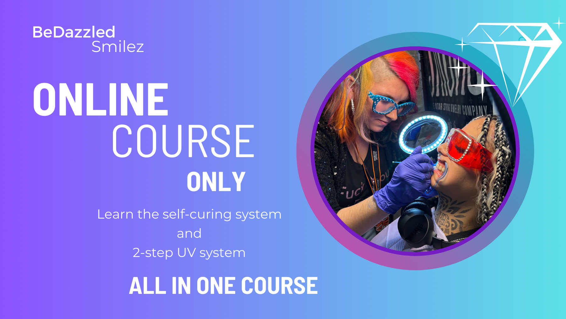 Certainly. Indeed, we teach the UV light bonding system, which we also cover in our course. There are advantages to acquiring knowledge about both systems. The self-curing bonds take only 5 minutes to apply 1 crystal, making them ideal for uncomplicated designs. On the other hand, the UV bonds prove advantageous for intricate designs; however, they result in a residual bond remaining on the tooth after the gem detachment. Additionally, it's important to note that the UV bonding system relies on electricity, while the self-curing system boasts complete portability and has a proven track record in the dental industry spanning over 23 years.